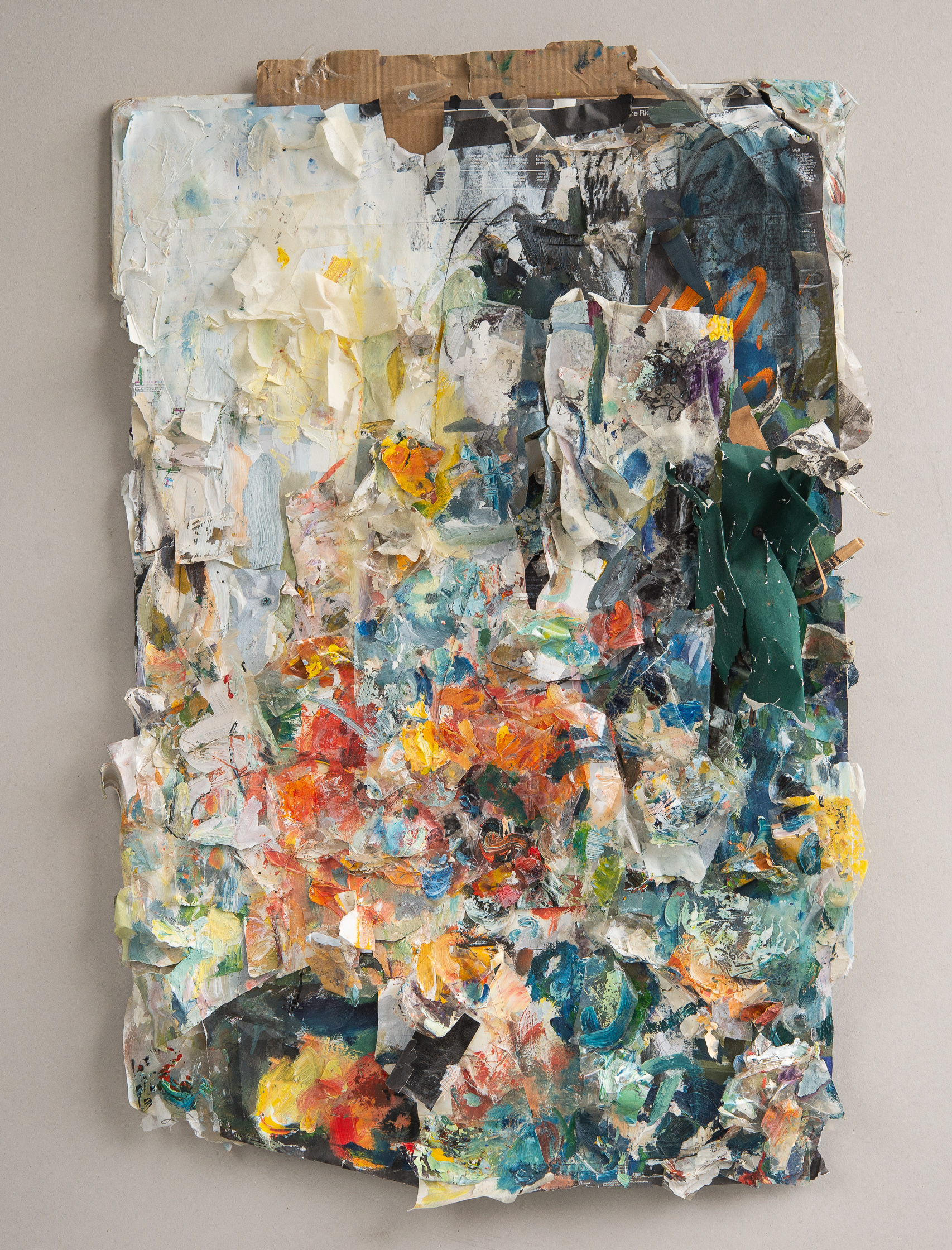 Oil paint, tape, paper, cardboard, foamcore26 x 40 x 7 in (66 x 102 x 18 cm)